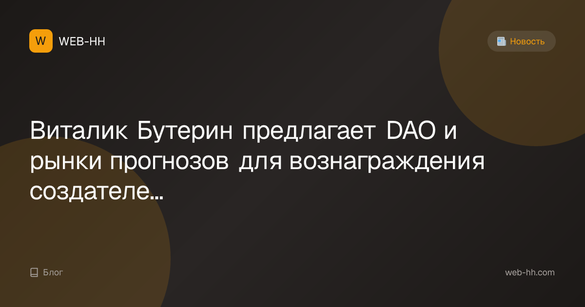 Vitalik Buterin pitches DAOs, prediction markets to reward content creators