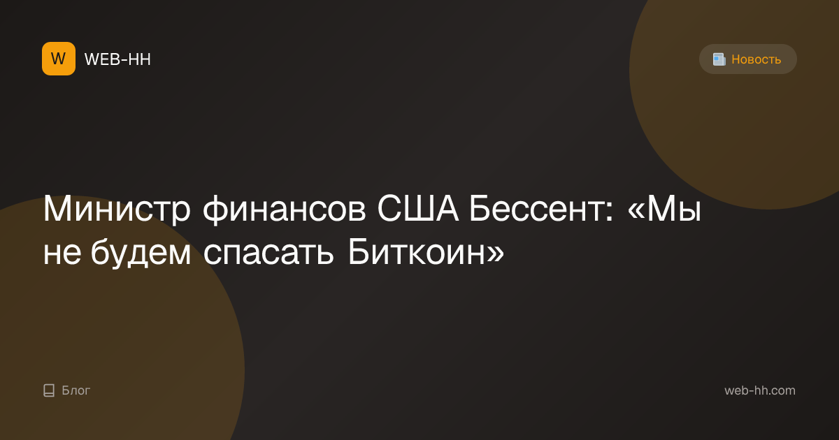 US Treasury Secretary Bessent: 'We won't bail out Bitcoin'