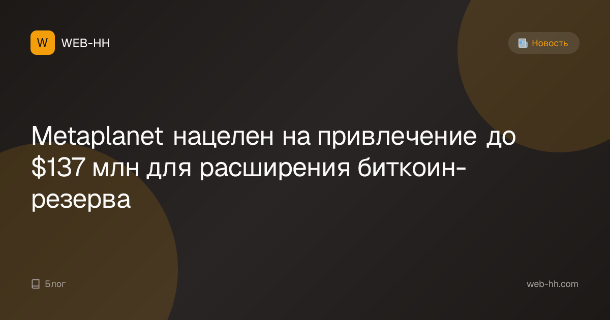 Metaplanet targets up to $137 million in total potential funding through shares and warrants for its bitcoin treasury plans.