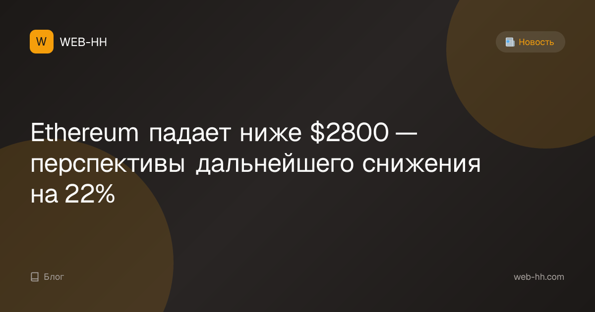 Ethereum loses $2.8K support as charts point to possible 22% downside