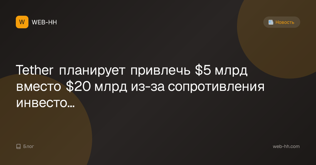 Tether advisors have floated a $5 billion raise, down from $20 billion, after investor resistance to a $500 billion valuation target.