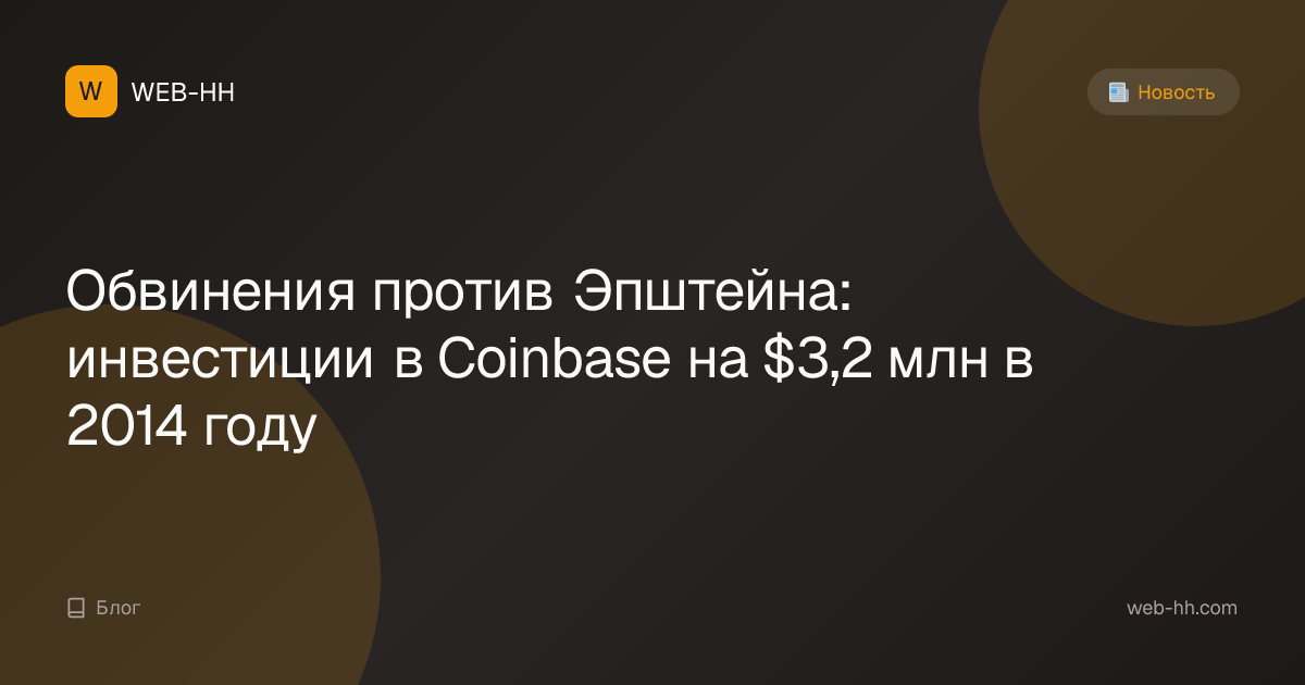 Обвинения против Эпштейна: инвестиции в Coinbase на $3,2 млн в 2014 году