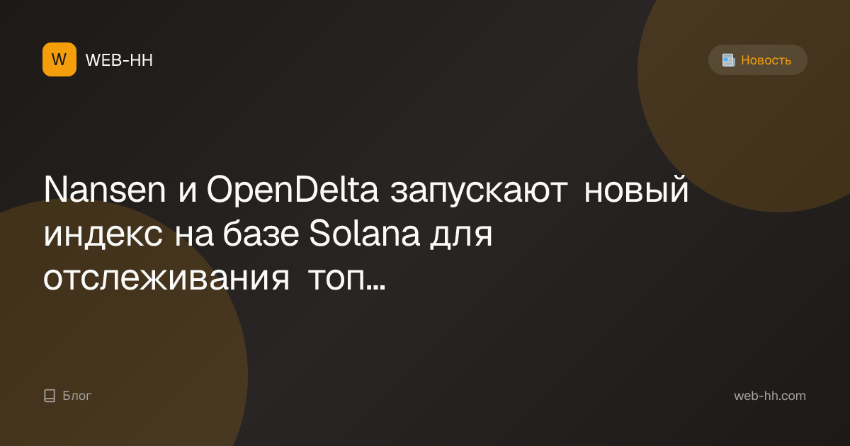Nansen и OpenDelta запускают новый индекс на базе Solana для отслеживания топовых L1-блокчейнов