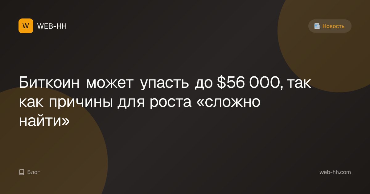 Биткоин может упасть до $56 000, так как причины для роста «сложно найти»