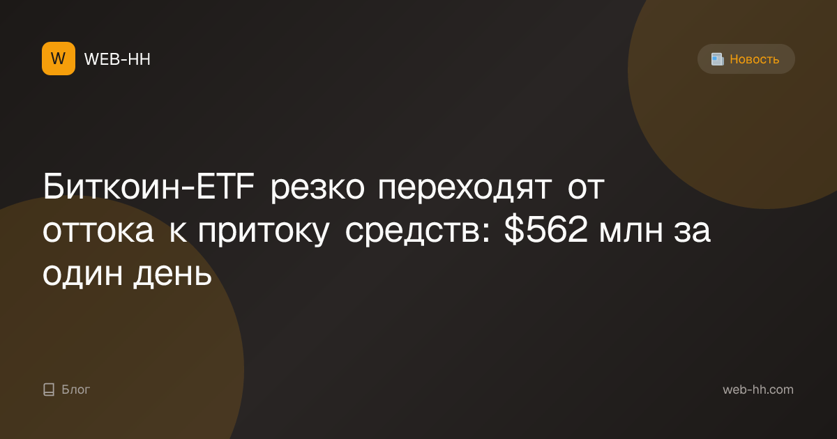 Биткоин-ETF резко переходят от оттока к притоку средств: $562 млн за один день