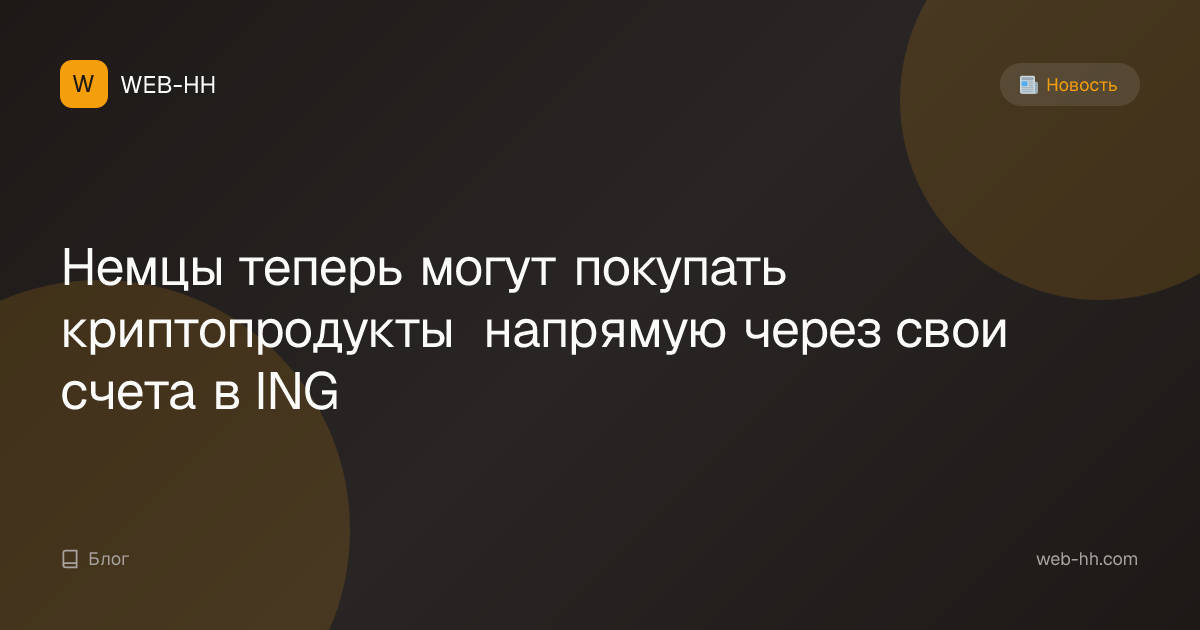 Немецкие клиенты ING теперь могут покупать биткоин, эфир, солану и другие криптопродукты напрямую через свои банковские счета. Эти криптоактивы будут облагаться теми же налогами, что и при прямом владении криптовалютами.
