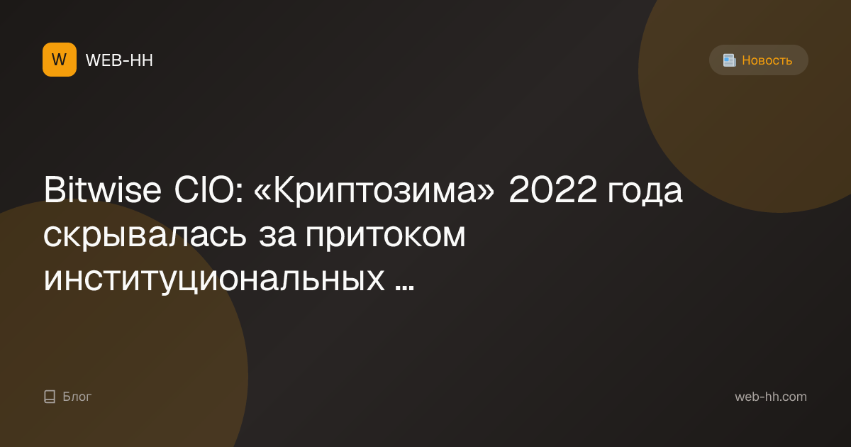 Bitwise CIO: «Криптозима» 2022 года скрывалась за притоком институциональных инвестиций