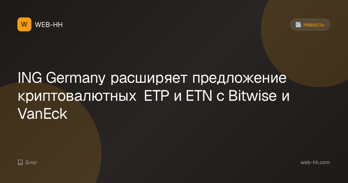 ING Germany расширяет предложение криптовалютных ETP и ETN с Bitwise и VanEck