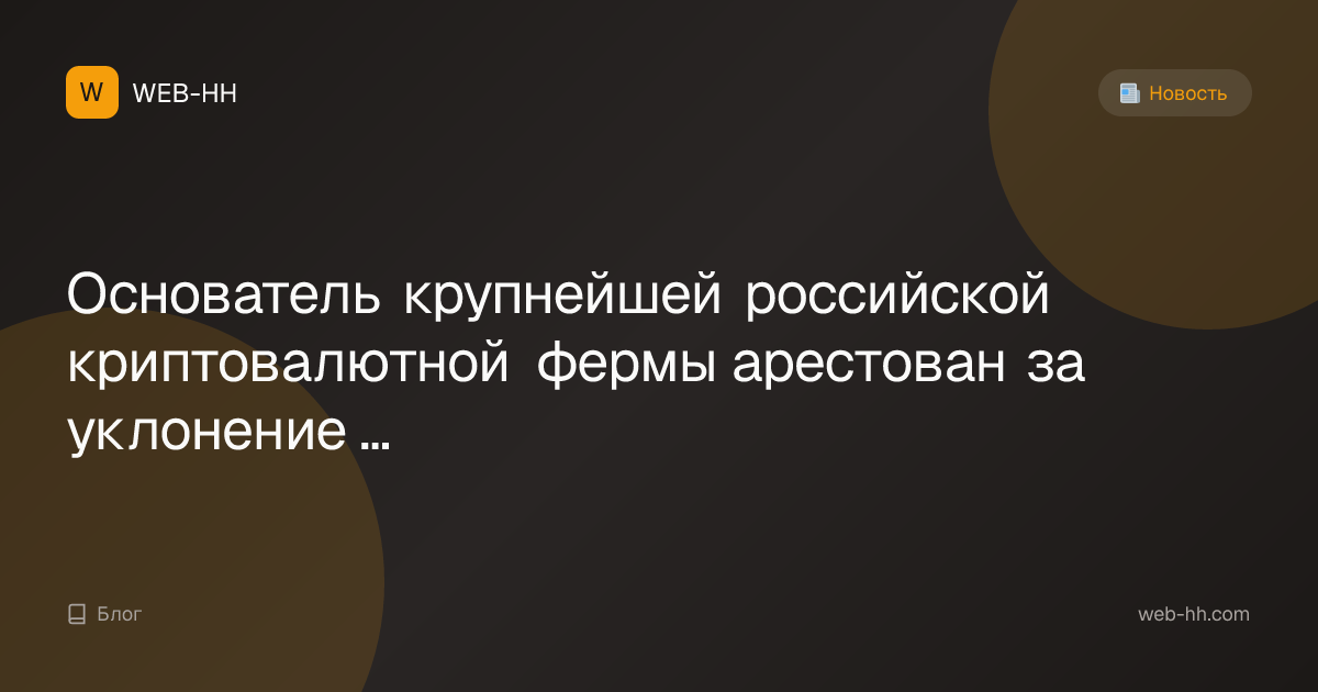 Основатель крупнейшей российской криптовалютной фермы арестован за уклонение от уплаты налогов