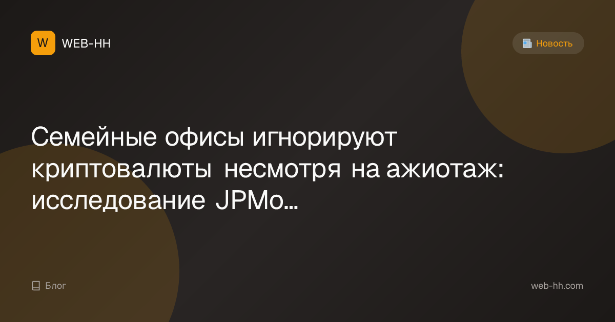 Семейные офисы игнорируют криптовалюты несмотря на ажиотаж: исследование JPMorgan