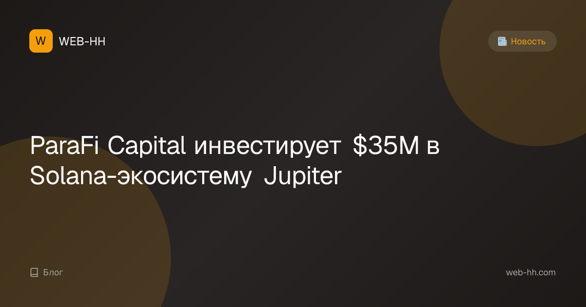 ParaFi Capital инвестирует $35M в Solana-экосистему Jupiter