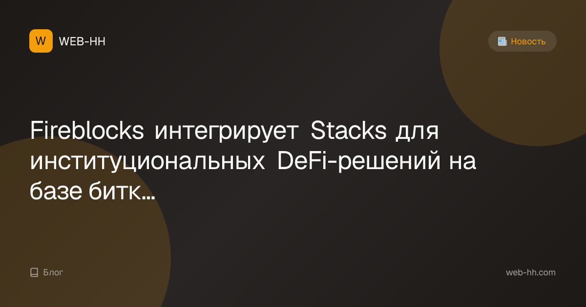Fireblocks интегрирует Stacks для институциональных DeFi-решений на базе биткойна