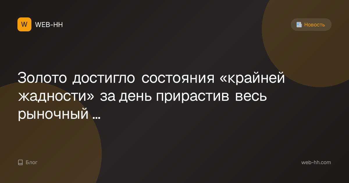 Золото достигло состояния «крайней жадности» за день прирастив весь рыночный капитал биткоина