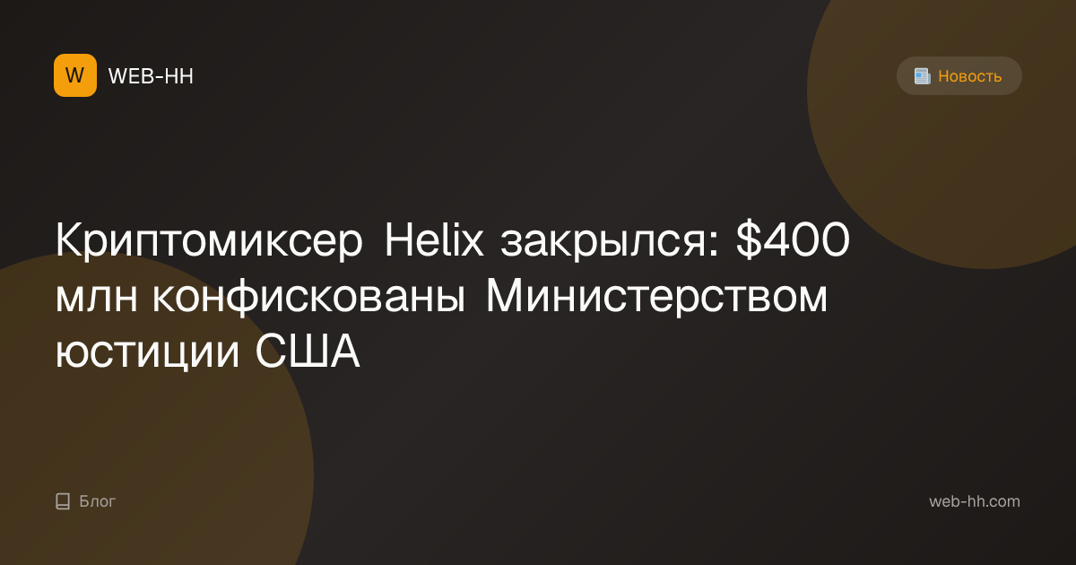 Криптомиксер Helix закрылся: $400 млн конфискованы Министерством юстиции США