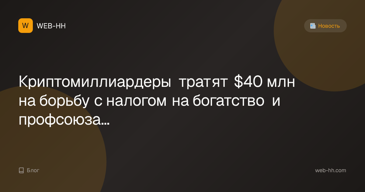 Криптомиллиардеры тратят $40 млн на борьбу с налогом на богатство и профсоюзами в Калифорнии