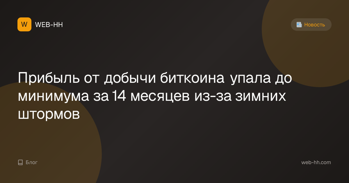 Прибыль от добычи биткоина упала до минимума за 14 месяцев из-за зимних штормов
