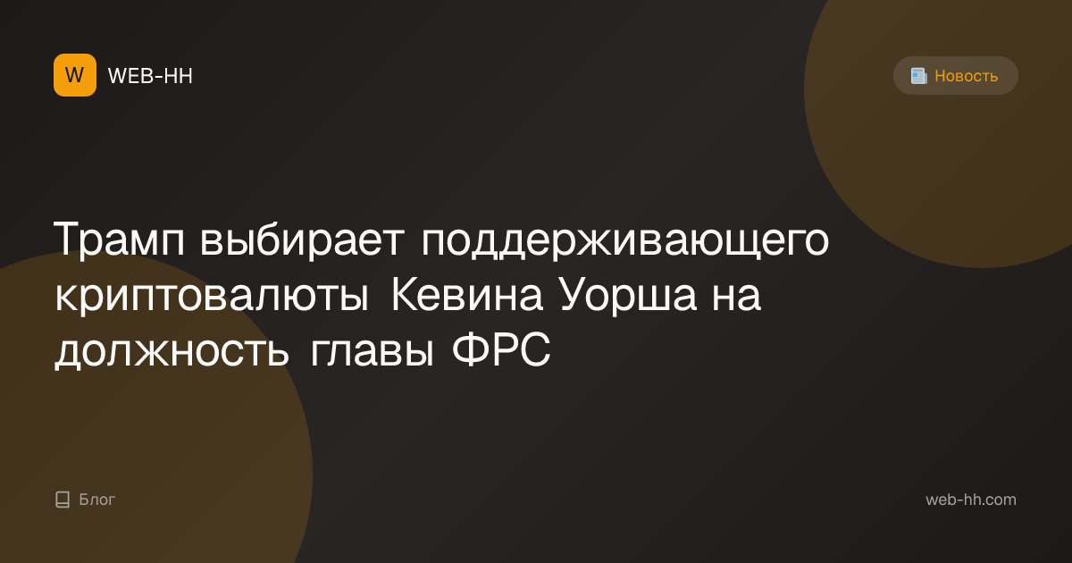 Трамп выбирает поддерживающего криптовалюты Кевина Уорша на должность главы ФРС