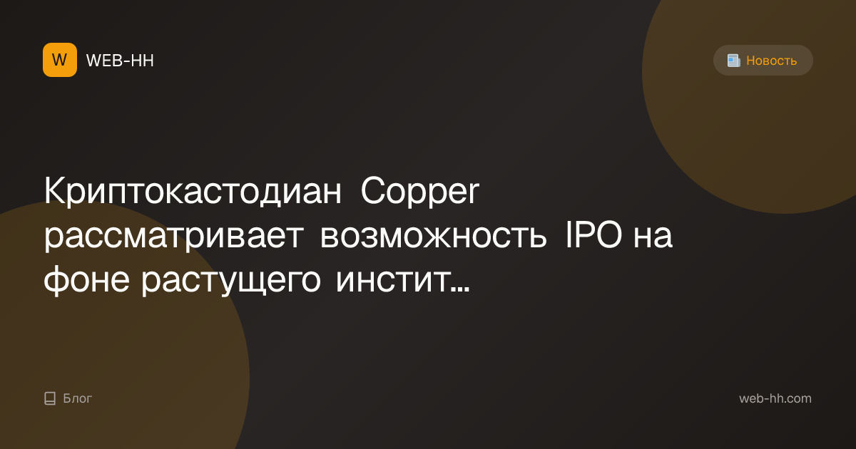 Возможное IPO Copper ещё больше легитимизирует цифровые активы как ключевую инфраструктуру рынка, а не узкоспециализированную услугу.