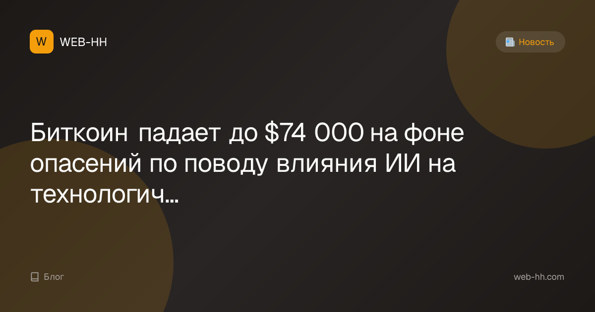 Биткоин падает до $74 000 на фоне опасений по поводу влияния ИИ на технологический сектор