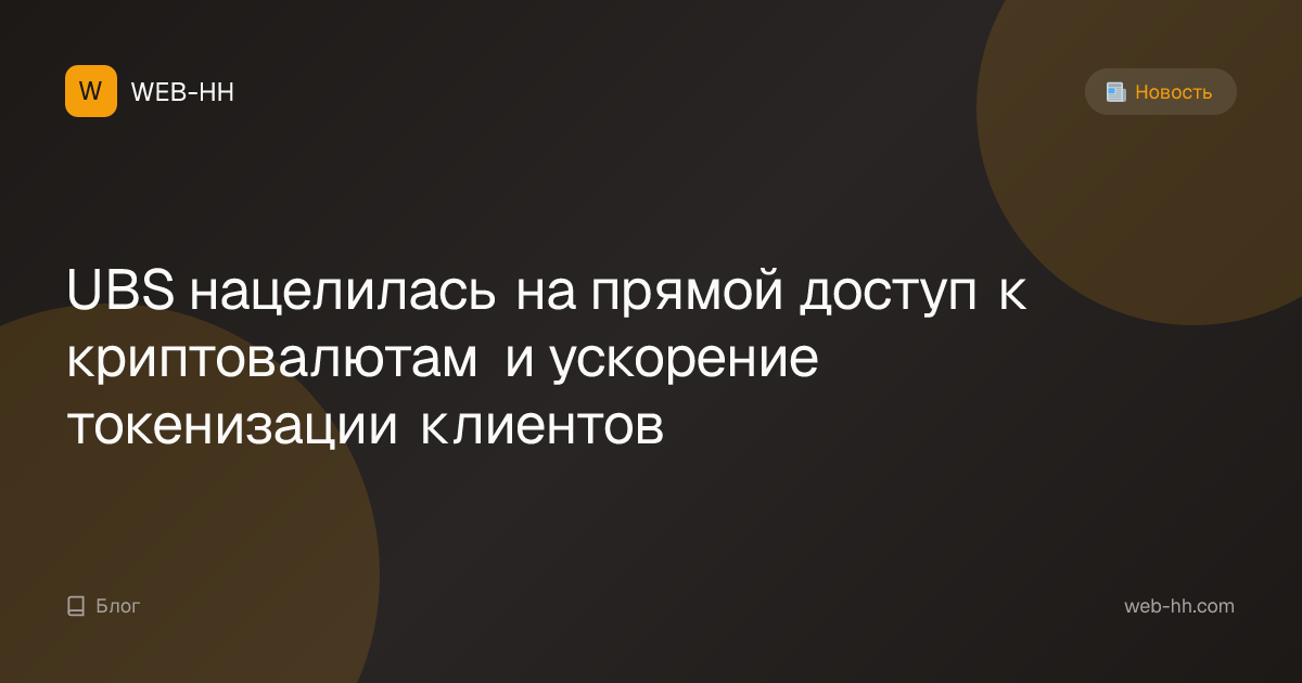 UBS нацелилась на прямой доступ к криптовалютам и ускорение токенизации клиентов
