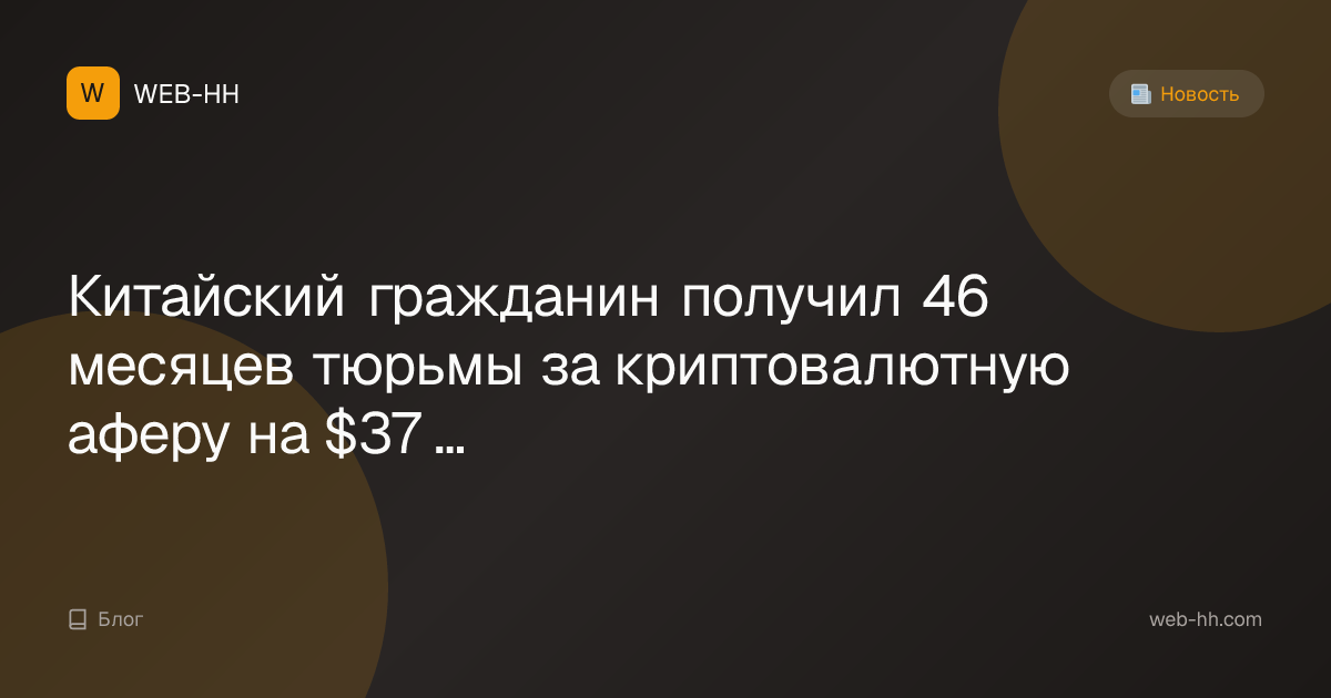 Китайский гражданин осуждён почти на 4 года за свою роль в мошеннической криптовалютной схеме, обманувшей американских инвесторов на сумму $37 млн.