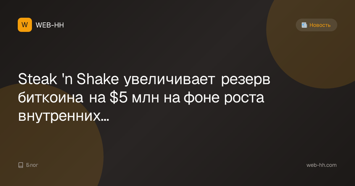 Steak 'n Shake увеличивает резерв биткоина на $5 млн на фоне роста внутренних продаж на 18%