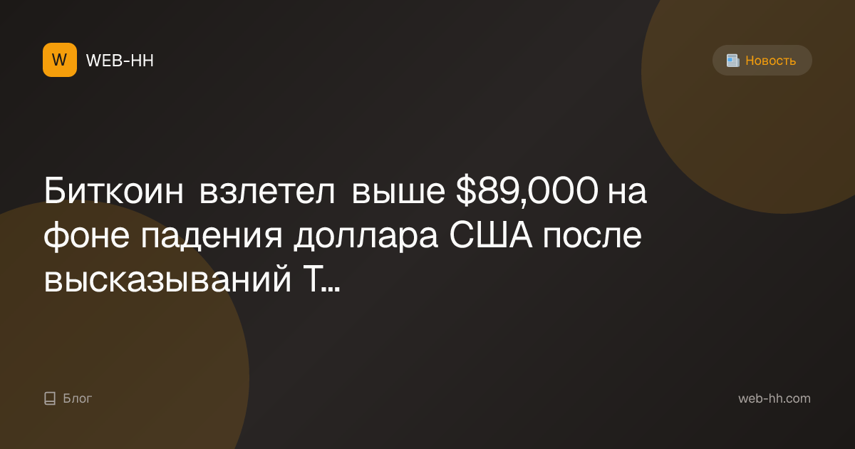 Биткоин взлетел выше $89,000 на фоне падения доллара США после высказываний Трампа