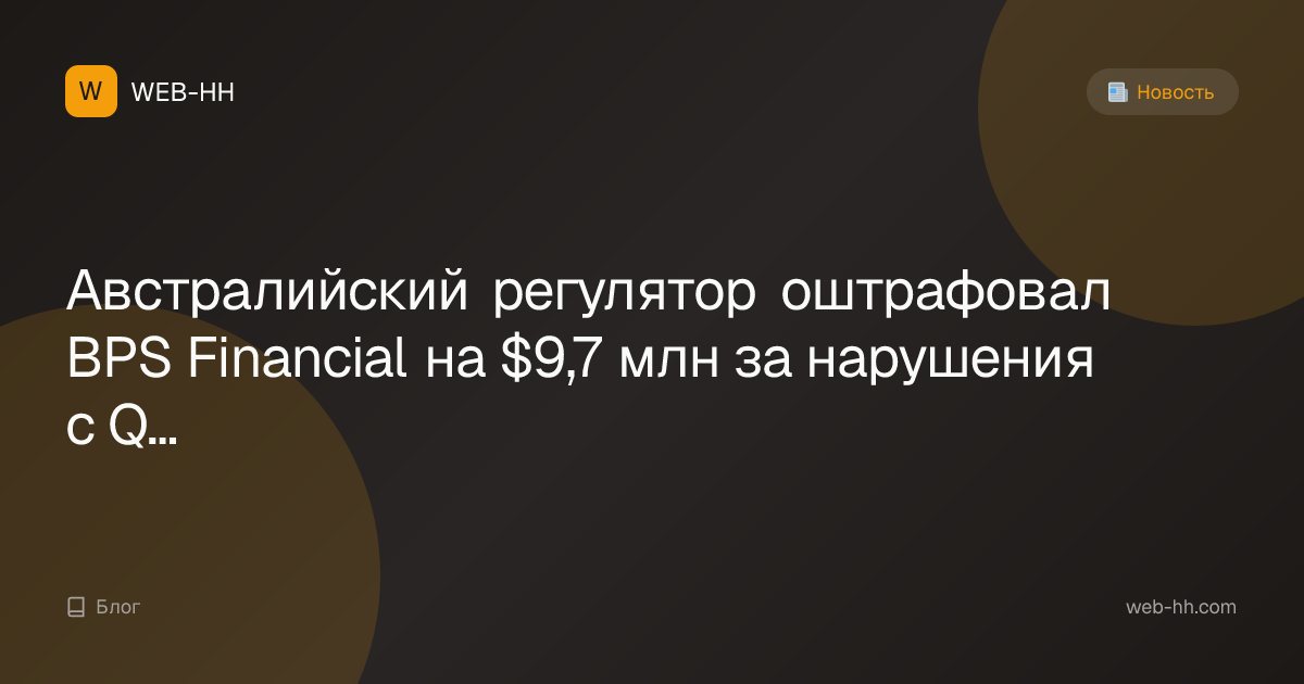 Австралийский регулятор оштрафовал BPS Financial на $9,7 млн за нарушения с Qoin Wallet