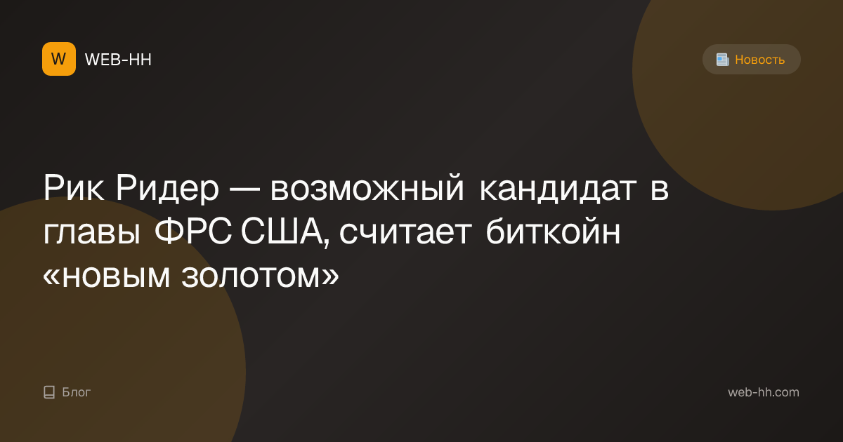 Рик Ридер — возможный кандидат в главы ФРС США, считает биткойн «новым золотом»