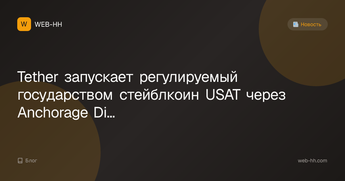 Новый стейблкоин USAT, выпущенный Tether и Anchorage Digital Bank, соответствует требованиям закона GENIUS и нацелен на институциональный спрос на цифровой доллар США.