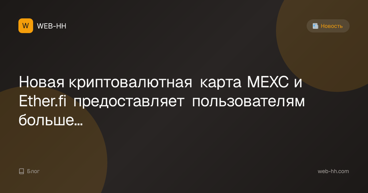 Новая криптовалютная карта MEXC и Ether.fi предоставляет пользователям больше контроля