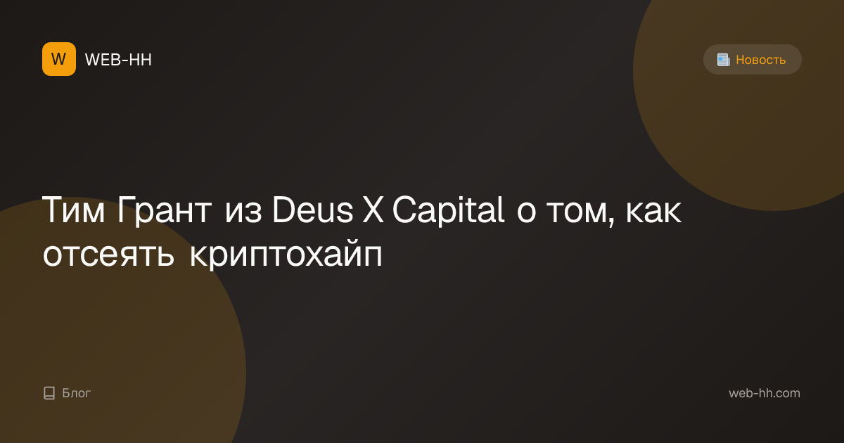 Тим Грант из Deus X Capital о том, как отсеять криптохайп