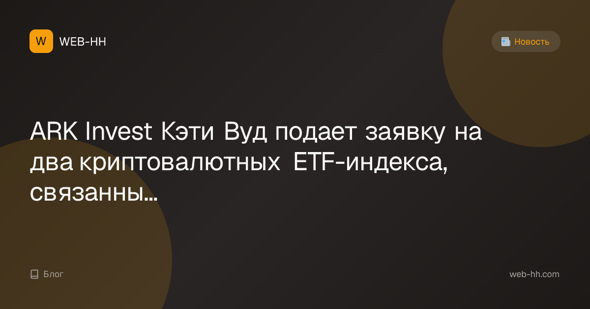 ARK Invest Кэти Вуд подает заявку на два криптовалютных ETF-индекса, связанных с CoinDesk 20