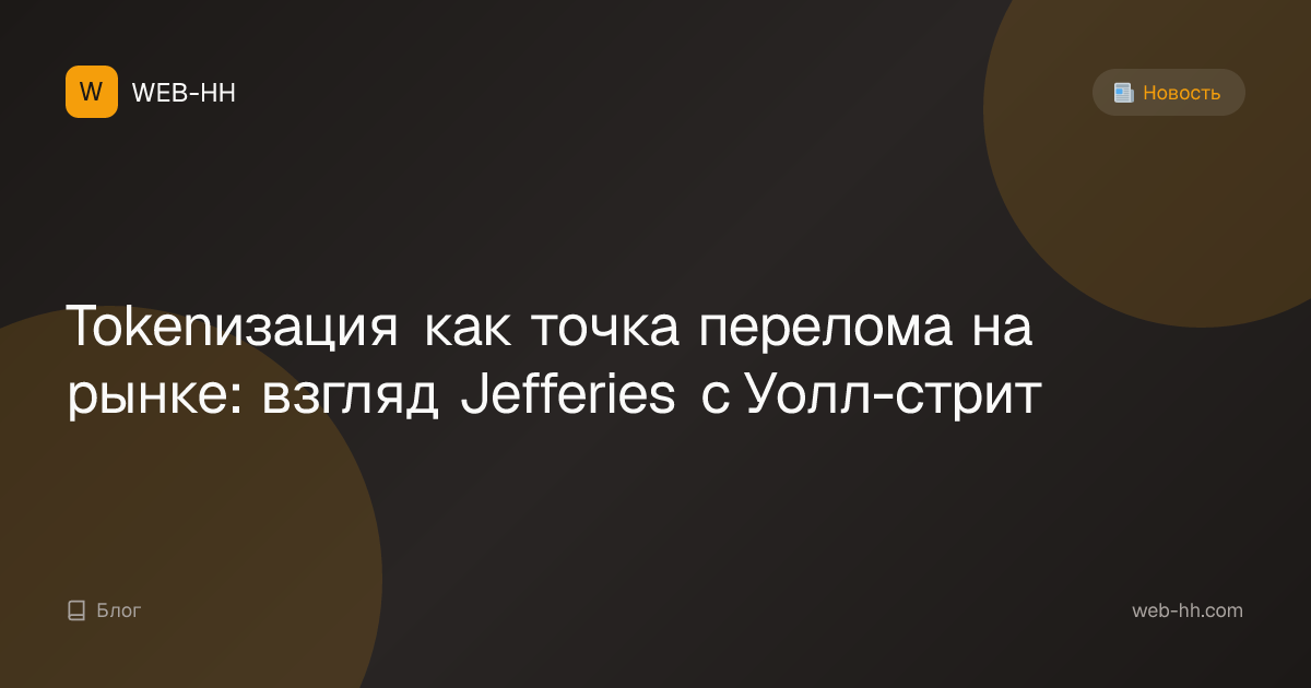 Tokenизация как точка перелома на рынке: взгляд Jefferies с Уолл-стрит
