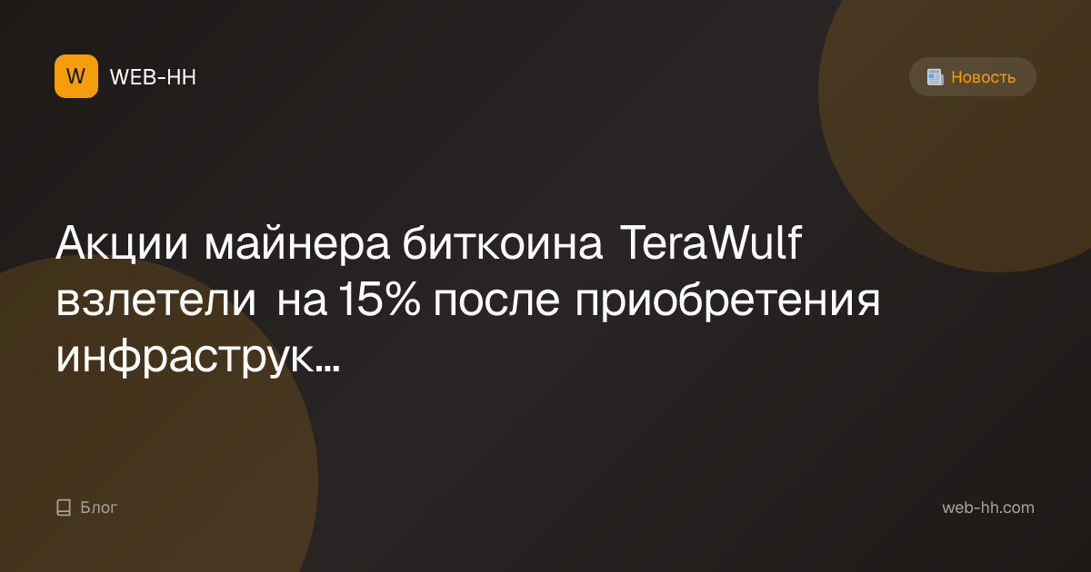 Акции майнера биткоина TeraWulf взлетели на 15% после приобретения инфраструктурных активов
