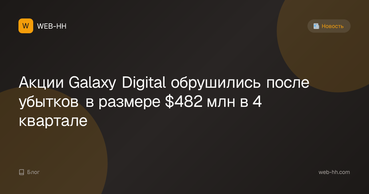 Акции Galaxy Digital обрушились после убытков в размере $482 млн в 4 квартале