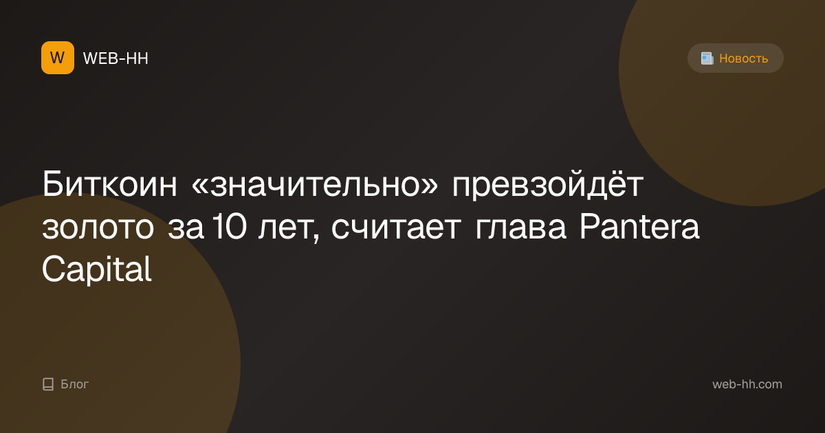 Биткоин «значительно» превзойдёт золото за 10 лет, считает глава Pantera Capital