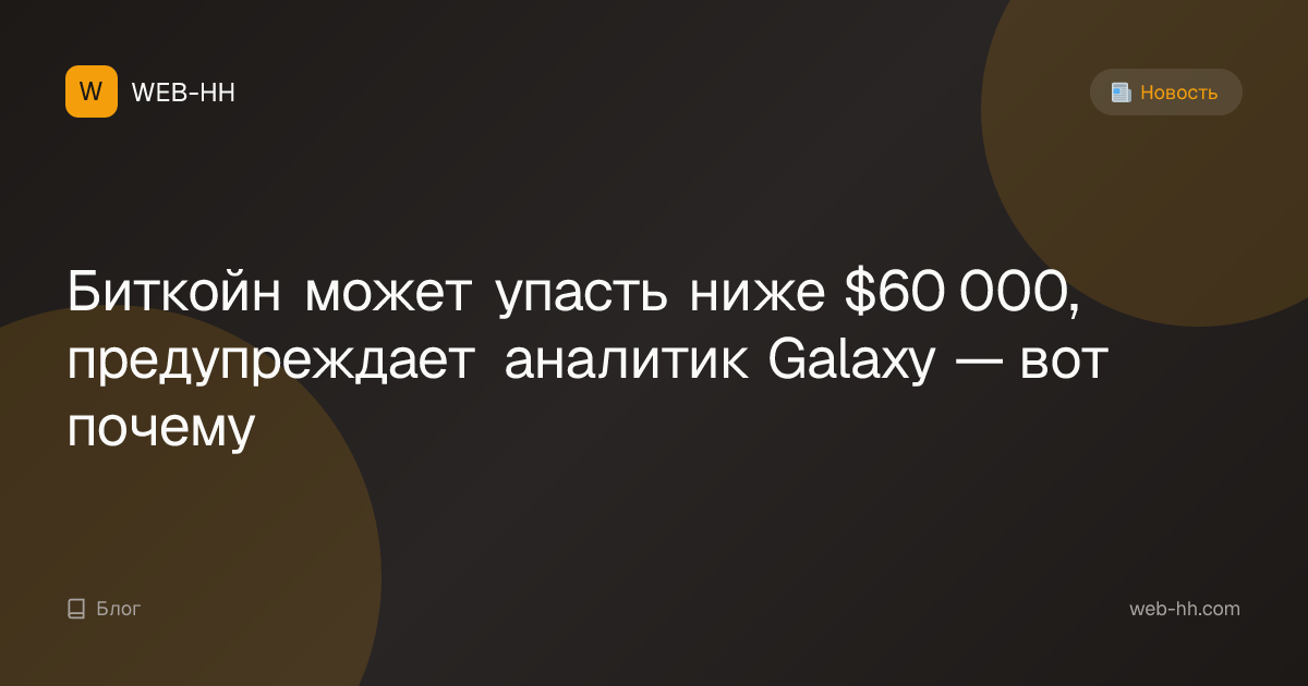 Биткойн может упасть ниже $60 000, предупреждает аналитик Galaxy — вот почему