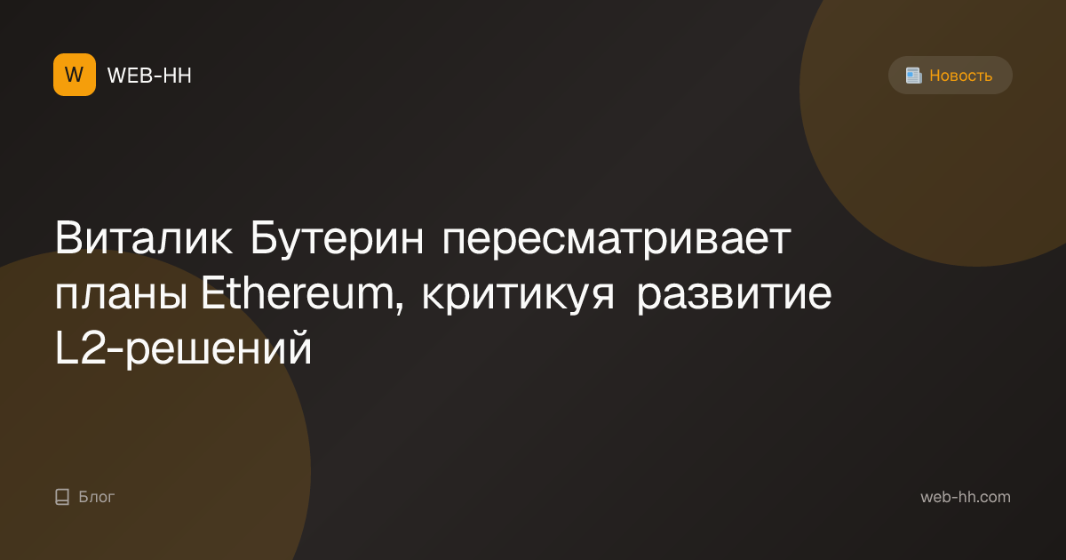 Виталик Бутерин пересматривает планы Ethereum, критикуя развитие L2-решений
