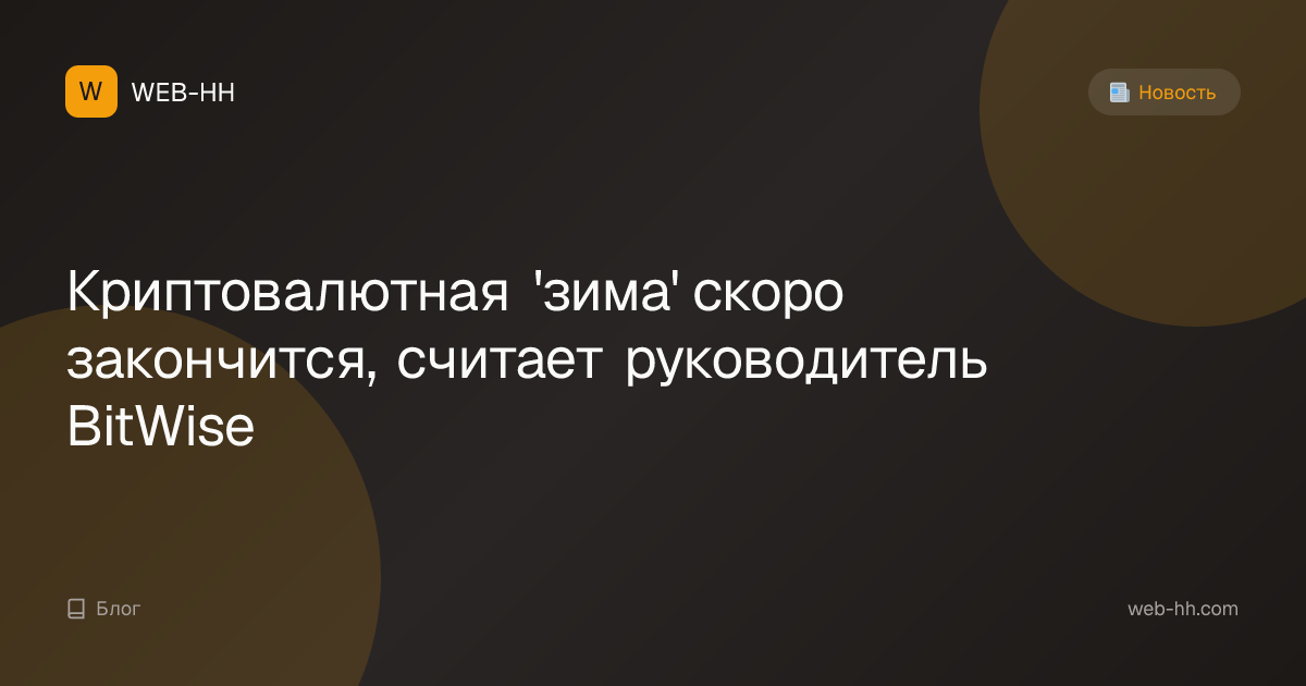 Криптовалютная 'зима' скоро закончится, считает руководитель BitWise
