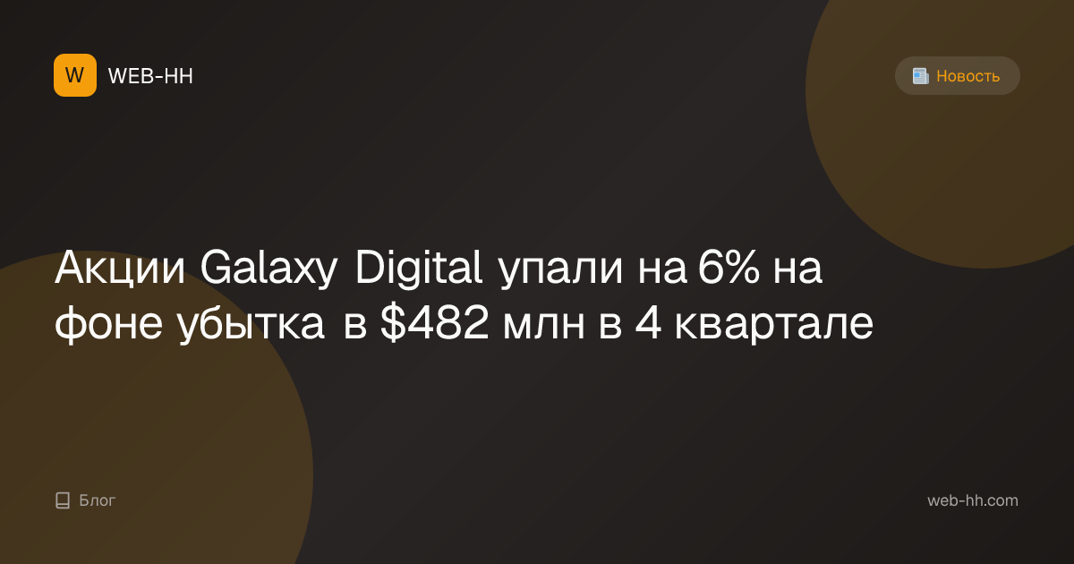 Акции Galaxy Digital упали на 6% на фоне убытка в $482 млн в 4 квартале