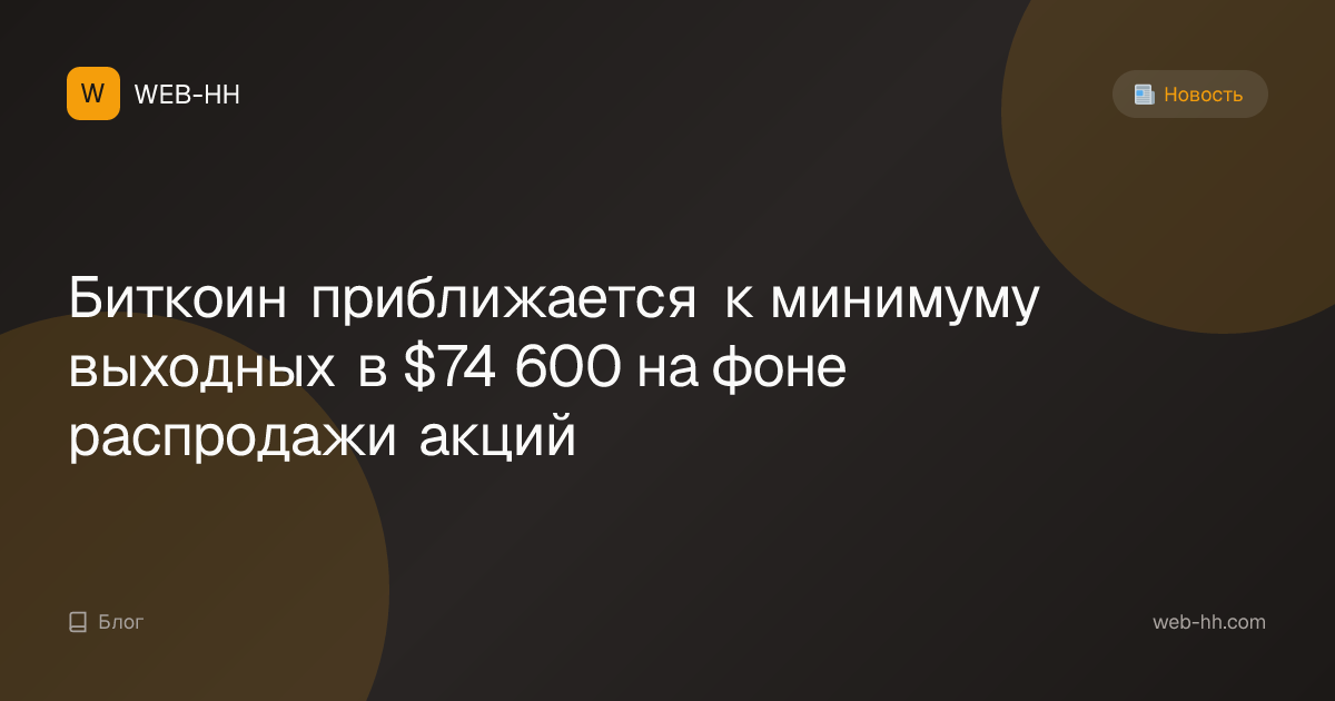 Биткоин приближается к минимуму выходных в $74 600 на фоне распродажи акций