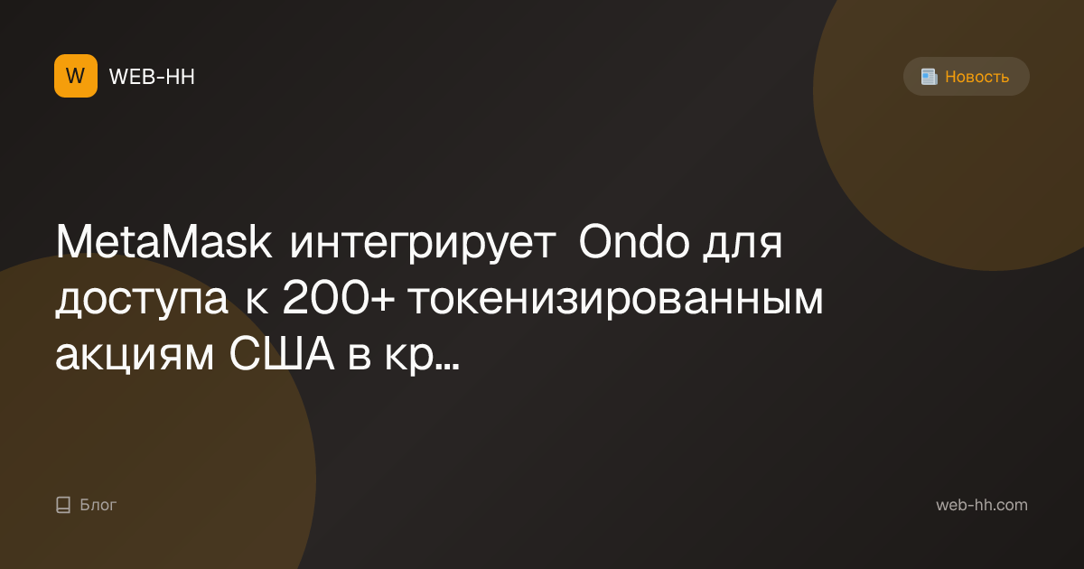 MetaMask интегрирует Ondo для доступа к 200+ токенизированным акциям США в криптовалютном кошельке